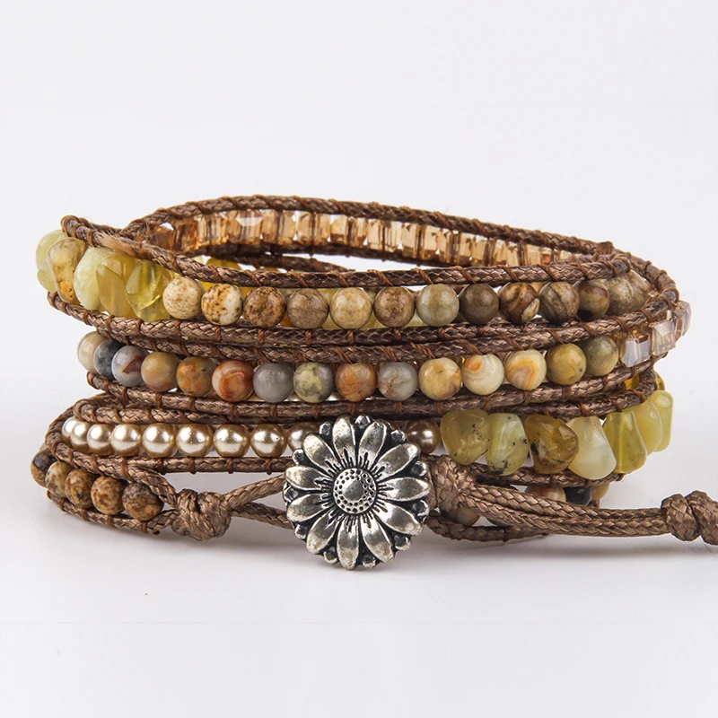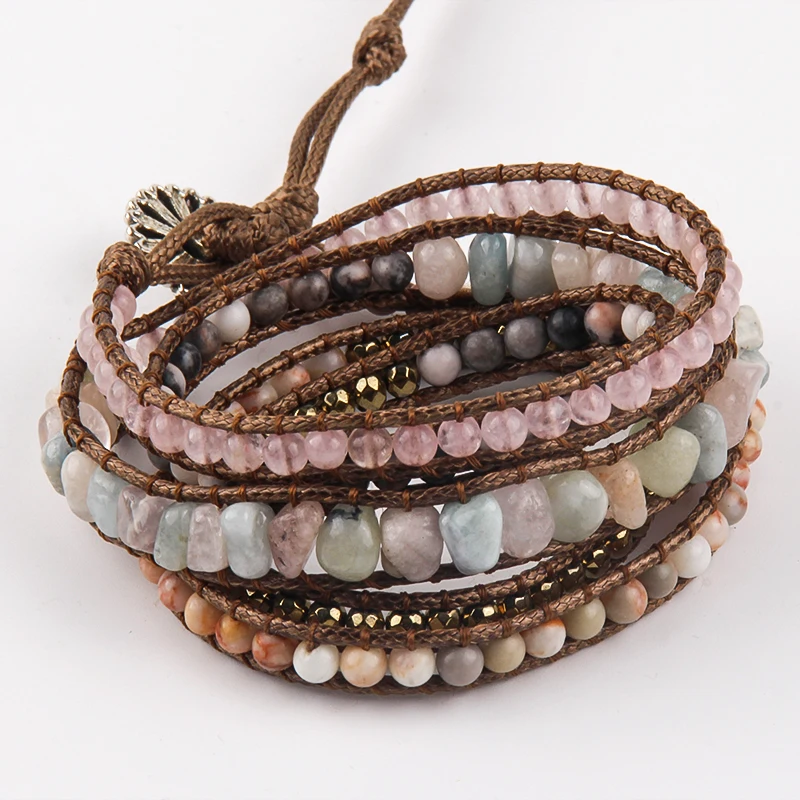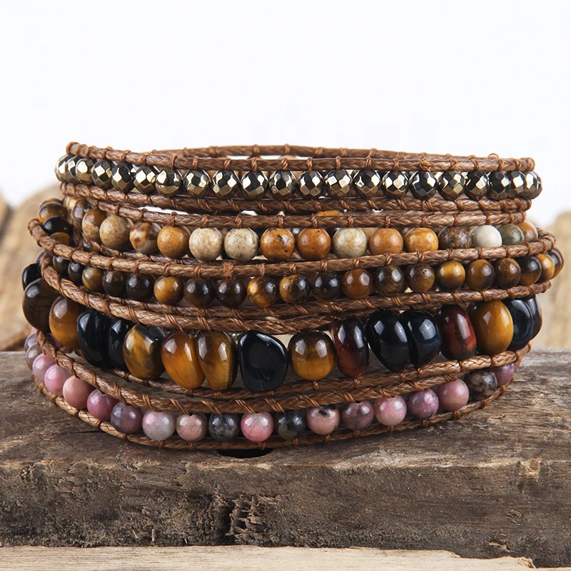 Fashion Bohemian Jewelry Natural Stones Designer 5 Strands Mix Handmade Wrap Bracelets Festival Gift